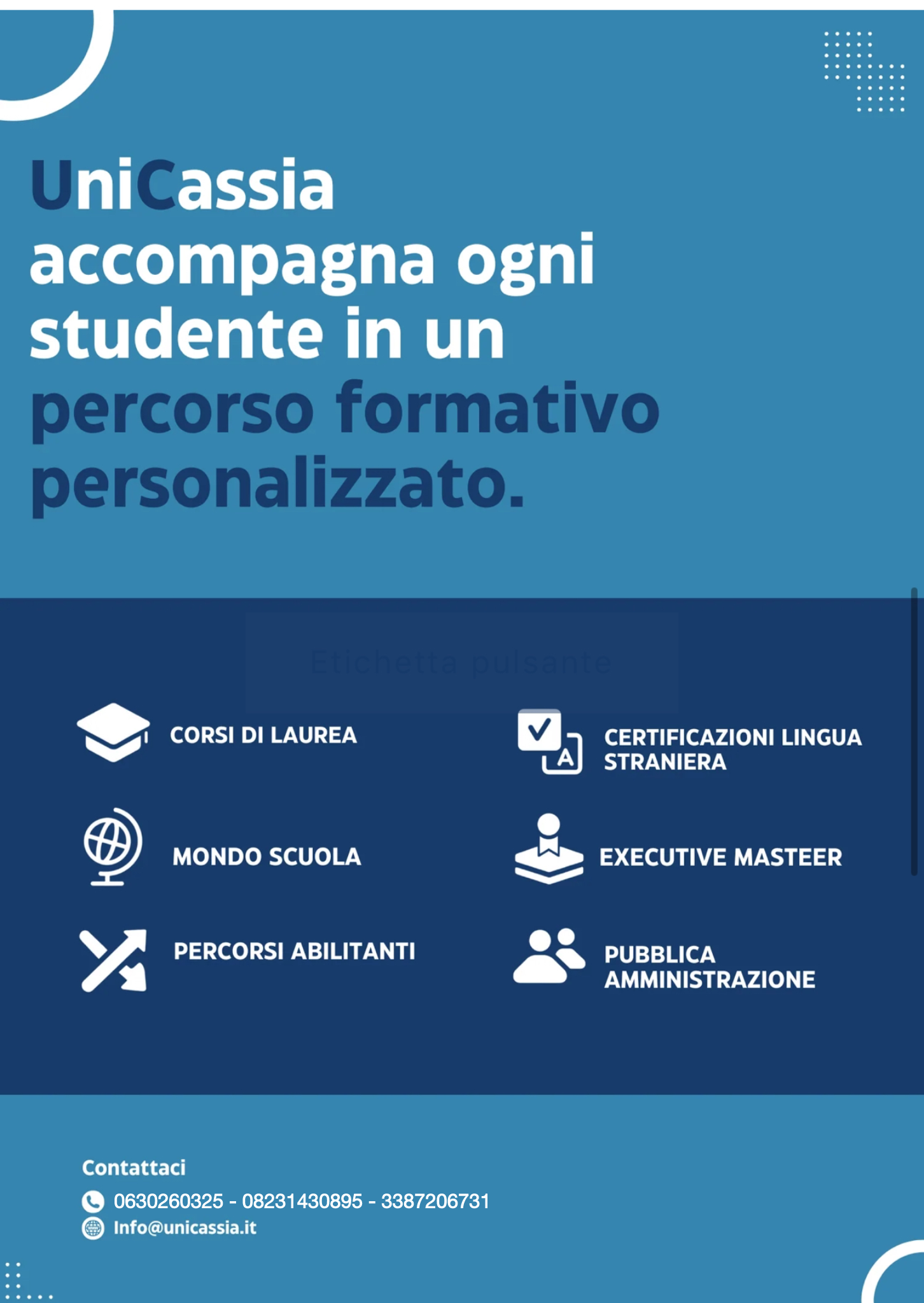 Scopri le aree di studio UniCassia e scegli il percorso triennale o magistrale più adatto a te.